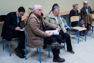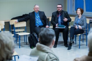 Gdańsk Oliwa, Zespół Szkół Architektury Krajobrazu i Handlowo - Usługowych, Józefa Czyżewskiego. Spotkanie Obywatelskie Prezydenta Gdańska z cyklu "Twoja Dzielnica Twój Gdańsk". Nz pierwszy po lewej, Andrzej Bojanowski Z-ca Prezydenta ds. polityki gospodarczej