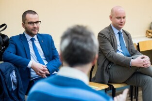 Gdańsk Oliwa, Zespół Szkół Architektury Krajobrazu i Handlowo - Usługowych, Józefa Czyżewskiego. Spotkanie Obywatelskie Prezydenta Gdańska z cyklu "Twoja Dzielnica Twój Gdańsk". Nz Grzegorz Szczuka, Dyrektor Wydziału rozwoju Społecznego i Zastępca Dyrektora ds. edukacji - Grzegorz Kryger