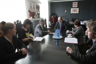 Urząd Miejski w Gdańsku. Prezydent Gdańska Paweł Adamowicz przyjął dziś delegację z rosyjskiego miasta Omsk. W skład delegacji weszli m.in. Mikhail Rasin, dyrektor Wydziału ds. Młodzieży, Edukacji Fizycznej i Sportu oraz Lidia Alekseeva, główny specjalista ds. kontekstów zagranicznych.