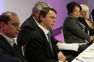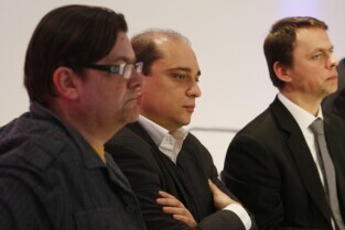 Spotkanie Prezydenta Gdańska Pawła Adamowicza z dyrektorami gdańskich instytucji kultury poświęcone planom na 2013 rok. Gdańsk Nowy Port, Łaźnia 2. Nz. Dyrektor Europejskiego Centrum Solidarności Basil Kerski