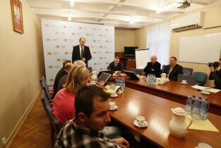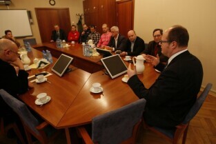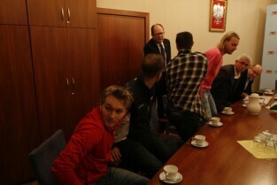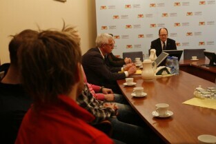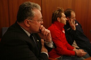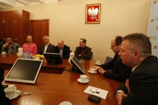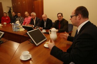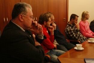 Spotkanie Prezydenta Gdańska Pawła Adamowicza z zarządem i zawodnikami klubu hokejowego "Stoczniowiec", poświecone sytuacji w klubie