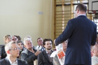 Gdańsk Niedźwiednik, ZKPiG nr 24. Spotkanie Prezydenta Gdańska Pawła Adamowicza z mieszkańcami dzielnicy Brętowo z cyklu „Twoja dzielnica - Twój Gdańsk". Dyskusja tematyczna z Z-cą Prezydenta ds. polityki społecznej Piotrem Kowalczukiem. Nz. Dyrektor Wydziału Rozwoju Społecznego UMG Grzegorz Szczuka