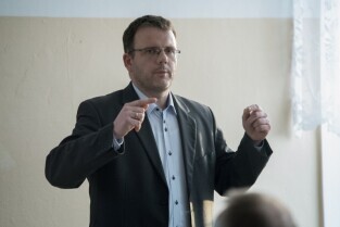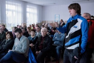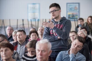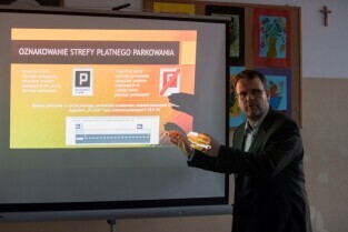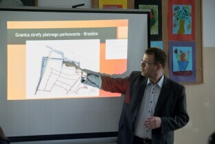 Gdańsk. Szkoła Podstawowa nr 20, przy ul. Wczasy 3. Specjalne spotkanie z mieszkańcami Brzeźna w sprawie tzw. polityki parkingowej. Nz Tomasz Wawrzonek - kierownik działu Inżynierii Ruchu w Gdańskim Zarządzie Dróg i Zieleni