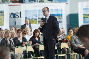 Spotkanie Prezydenta Gdańska Pawła Adamowicza z mieszkańcami gdańskiej dzielnicy Chełm z cyklu "Mój dom, moja dzielnica, moje miasto". Gdańsk Chełm, ZSO nr 7