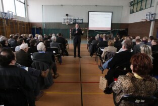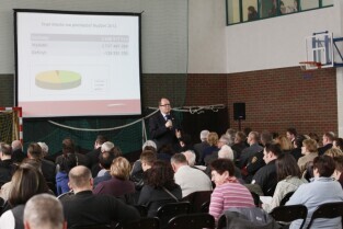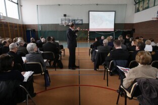 Spotkanie Prezydenta Gdańska Pawła Adamowicza z cyklu "Mój dom, moja dzielnica, moje miasto" z mieszkańcami osiedla Jasień w Gdańsku. SP nr 85 przy ul. Stolema. Nz. Z-ca Prezydenta Gdańska Andrzej Bojanowski