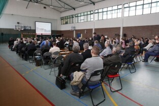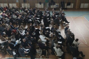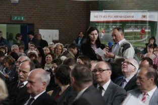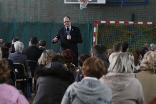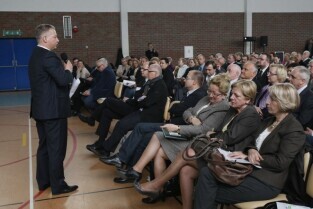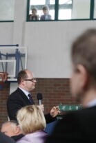 Spotkanie Prezydenta Gdańska Pawła Adamowicza z cyklu "Mój dom, moja dzielnica, moje miasto" z mieszkańcami osiedla Jasień w Gdańsku. SP nr 85 przy ul. Stolema