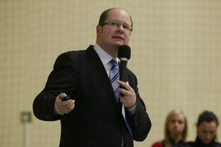 Gdańsk Złota Karczma. Spotkanie Prezydenta Gdańska Pawła Adamowicza z mieszkańcami Klukowa, Matarni, Złotej Karczmy