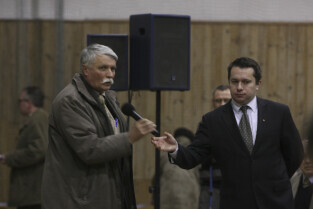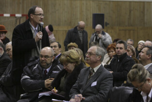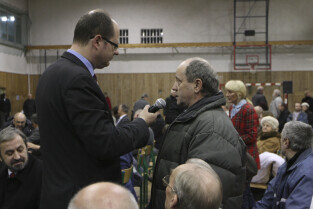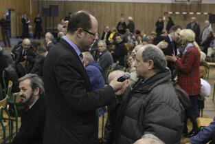 Spotkanie obywatelskie Prezydenta Gdańska Pawła Adamowicza z mieszkańcami dzielnicy Nowy Port. Gdańsk, ZSO nr 5. Nz. zatroskany Maciej Lisicki, z-ca Prezydenta Gdańska