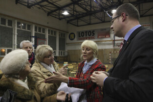 Spotkanie obywatelskie Prezydenta Gdańska Pawła Adamowicza z mieszkańcami dzielnicy Nowy Port. Gdańsk, ZSO nr 5