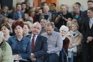 Gdańsk. Spotkanie Prezydenta Pawła Adamowicza z mieszkańcami Orunia – Św. Wojciech – Lipce. Nz. Wiceprezydent Gdańska Wiesław Bielawski i Skarbnik Elżbieta Blacharska.