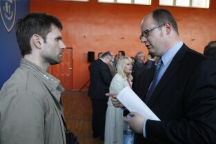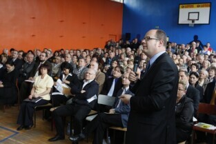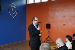 Spotkanie Prezydenta Gdańska Pawła Adamowicza z mieszkańcami gdańskiej dzielnicy Przeróbka w Szkole Podstawowej nr 61