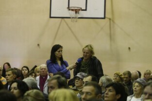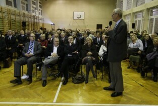Spotkanie Prezydenta Gdańska Pawła Adamowicza z mieszkańcami dzielnicy Przymorze Wielkie z cyklu "Mój dom, moja dzielnica, moje miasto". Gdańsk, Ogólnokształcące Szkoły Sportowe przy ul. Kołobrzeskiej