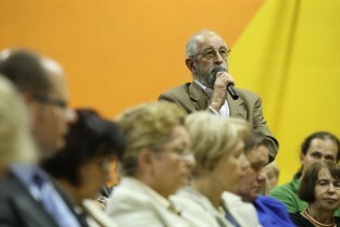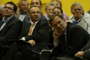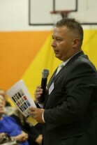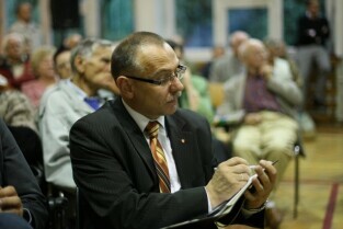 Spotkanie obywatelskie Prezydenta Gdańska Pawła Adamowicza z mieszkańcami Przymorza Wielkiego. Gdańsk, Zespół Szkół Zawodowych nr 9. Nz. gdański radny Jerzy Borowczak