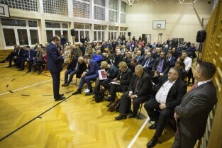 Spotkanie Prezydenta Gdańska Pawła Adamowicza z mieszkańcami dzielnicy Przymorze Wielkie z cyklu "Twoja dzielnica - Twój Gdańsk". Gdańsk Przymorze, Ogólnokształcące Szkoły Sportowe. Spotkanie tematyczne z Z-cą Prezydenta Gdańska Wiesławem Bielawskim