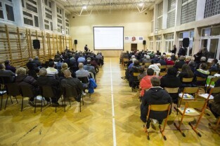 Spotkanie Prezydenta Gdańska Pawła Adamowicza z mieszkańcami dzielnicy Przymorze Wielkie z cyklu "Twoja dzielnica - Twój Gdańsk". Gdańsk Przymorze, Ogólnokształcące Szkoły Sportowe. Spotkanie tematyczne z Z-cą Prezydenta Gdańska Piotrem Kowalczukiem