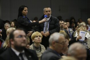 Spotkanie Prezydenta Gdańska Pawła Adamowicza z mieszkańcami Śródmieścia z cyklu "Mój dom, moja dzielnica, moje miasto". Gdańsk, Technikum Łączności przy Podwalu Staromiejskim
