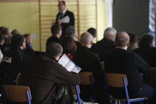 Spotkanie Prezydenta Gdańska Pawła Adamowicza z cyklu "Mój dom, moja dzielnica, moje miasto" z mieszkańcami Ujeściska i Łostowic. Gdańsk Ujeścisko, SP 12 przy ul. Człuchowskiej. Nz. Dyrektor ZDiZ Mieczysław Kotłowski