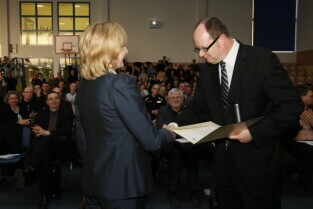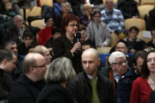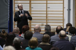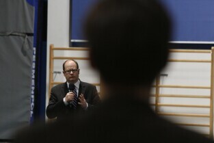 Spotkanie Prezydenta Gdańska Pawła Adamowicza z cyklu "Mój dom, moja dzielnica, moje miasto" z mieszkańcami Ujeściska i Łostowic. Gdańsk Ujeścisko, SP 12 przy ul. Człuchowskiej