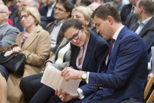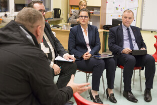 Spotkanie władz miasta z mieszkańcami dzielnicy Wrzeszcz Górny z cyklu "Twoja dzielnica - Twój Gdańsk". Szkoła Podstawowa nr 39 przy ul. Obywatelskiej. Nz. Z-cy Prezydenta Gdańska Aleksandra Dulkiewicz i Piotr Grzelak