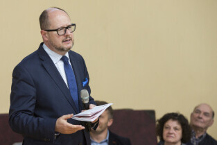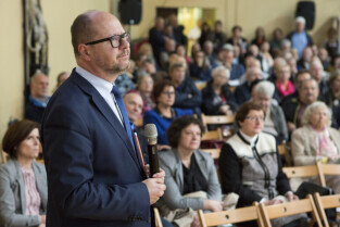 Spotkanie władz miasta z mieszkańcami dzielnicy Wrzeszcz Górny z cyklu "Twoja dzielnica - Twój Gdańsk". Szkoła Podstawowa nr 39 przy ul. Obywatelskiej. Nz. Prezydent Gdańska Paweł Adamowicz