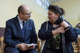 Spotkanie władz miasta z mieszkańcami dzielnicy Wrzeszcz Górny z cyklu "Twoja dzielnica - Twój Gdańsk". Szkoła Podstawowa nr 39 przy ul. Obywatelskiej. Nz. Radni Miasta Gdańska Emilia Lodzińska i Mirosław Zdanowicz