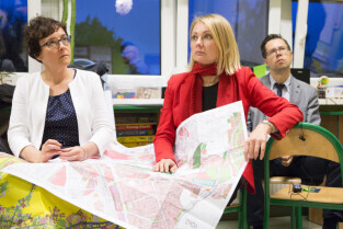 Spotkanie władz miasta z mieszkańcami dzielnicy Wrzeszcz Górny z cyklu "Twoja dzielnica - Twój Gdańsk". Szkoła Podstawowa nr 39 przy ul. Obywatelskiej. Nz. po prawej Dyrektor Briura Rozwoju Gdańska Edyta Damszel-Turek