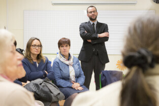Spotkanie władz miasta z mieszkańcami dzielnicy Wrzeszcz Górny z cyklu "Twoja dzielnica - Twój Gdańsk". Szkoła Podstawowa nr 39 przy ul. Obywatelskiej. Nz. Dyrektor Wydziału Rozwoju Społecznego UMG Grzegorz Szczuka