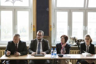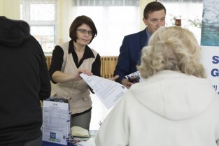 Spotkanie Prezydenta Gdańska Pawła Adamowicza z mieszkańcami dzielnicy Zaspa-Rozstaje z cyklu „Twoja dzielnica - Twój Gdańsk". ZKPiG nr 12 przy ul. Burzyńskiego. Nz. po lewej Z-ca Prezydenta Gdańska Andrzej Bojanowski i Dyrektor Wydziału Programów Rozwojowych UMG Marcin Dawidowski, po prawej Kierownik Referatu Badań i Analiz Społeczno - Gospodarczych Wydziału Polityki Gospodarczej UMG Katarzyna Drozd-Wiśniewska