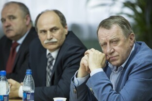 Spotkanie Prezydenta Gdańska Pawła Adamowicza z mieszkańcami dzielnicy Zaspa-Rozstaje z cyklu „Twoja dzielnica - Twój Gdańsk". ZKPiG nr 12 przy ul. Burzyńskiego. Nz. od lewej: Z-ca Prezydenta Gdańska Wiesław Bielawski i Z-ca Prezydenta Gdańska Piotr Kowalczuk
