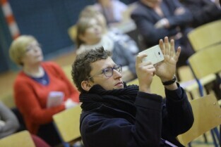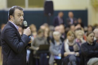 Gdańsk, Zespół Szkół Energetycznych. Spotkanie Prezydenta Pawła Adamowicza i Urzędników z mieszkańcami dzielnicy Młyniska. Nz. Wiceprezydent Gdańska Piotr Kowalczuk.
