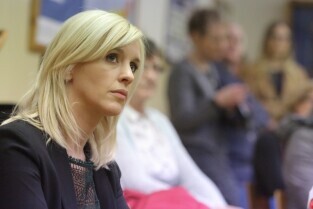 Gdańsk, Zespół Szkół Energetycznych. Spotkanie Prezydenta Pawła Adamowicza i Urzędników z mieszkańcami dzielnicy Młyniska. Nz. Radna Emilia Lodzińska.