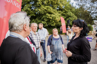 Gdańsk, ul. Pilotów. Spotkanie z mieszkańcami przy stole w dzielnicy - Zaspa Młyniec