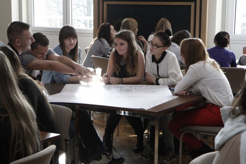 Urząd Miejski w Gdańsku. Spotkanie z młodzieżą szkół ponadgimnazjalnych w ramach rozmów nt. Strategii Rozwoju Gdańska 2030 Plus.