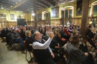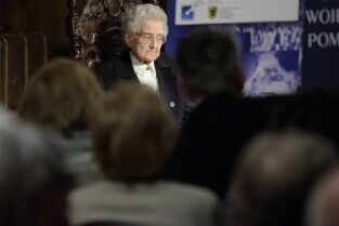 Gdańsk NCK - Ratusz Staromiejski. Spotkanie z okazji 95. rocznicy urodzin Heleny Zawistowskiej. Podczas spotkania Wiceprezydent Gdańska Piotr Grzelak wręczył jubilatce Medal Prezydenta Gdańska.