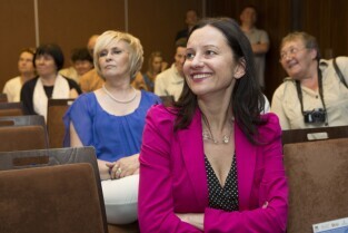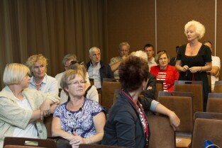 Spotkanie Prezydenta Gdańska Pawła Adamowicza z gdańskimi przewodnikami turystycznymi. Gdańsk, Hotel Mercure-Hevelius. Nz. Prezes Gdańskiej Organizacji Turystycznej Anna Górska