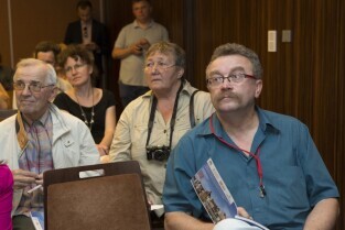 Spotkanie Prezydenta Gdańska Pawła Adamowicza z gdańskimi przewodnikami turystycznymi. Gdańsk, Hotel Mercure-Hevelius. Nz. Prezes Koła Przewodników Miejskich i Terenowych przy Oddziale Gdańskim PTTK Stanisław Sikora