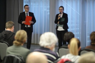 Gdańsk. Spotkanie z przewodnikami turystycznymi. Podsumowanie sezonu letniego - z Wiceprezydent Aleksandrą Dulkiewicz. Nz. Łukasz Wysocki-Prezesa Zarządu GOT i Wiceprezydent Gdańska Aleksandra Dulkiewicz.