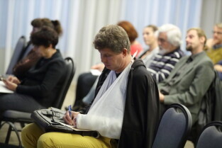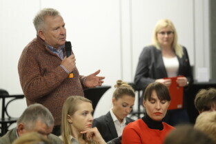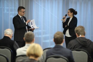 Gdańsk. Spotkanie z przewodnikami turystycznymi. Podsumowanie sezonu letniego - z Wiceprezydent Aleksandrą Dulkiewicz. Nz. Łukasz Wysocki-Prezesa Zarządu GOT.