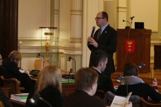 Spotkanie Prezydenta Gdańska Pawła Adamowicza i władz miasta z przewodniczącymi i zarządami rad osiedli. Gdańsk, Nowy Ratusz. Nz. Dyrektor Biura Rozwoju Gdańska Marek Piskorski