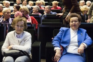 Gdańsk, Europejskie Centrum Solidarności. Spotkanie konsultacyjne z seniorami "Razem inwestujemy w Gdańsk. Propozycja inwestycji do 2020 r.". Nz. po lewej Pełnomocnik Prezydenta Gdańska ds. Seniorów Gabriela Dudziak
