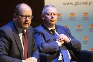 Gdańsk, Europejskie Centrum Solidarności. Spotkanie konsultacyjne z seniorami "Razem inwestujemy w Gdańsk. Propozycja inwestycji do 2020 r.". Nz. Z-ca Prezydenta Gdańska Andrzej Bojanowski, po lewej Prezydent Gdańska Paweł Adamowicz