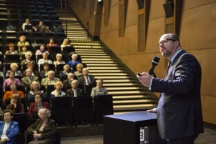 Gdańsk, Europejskie Centrum Solidarności. Spotkanie konsultacyjne z seniorami "Razem inwestujemy w Gdańsk. Propozycja inwestycji do 2020 r.". Nz. Prezydent Gdańska Paweł Adamowicz