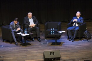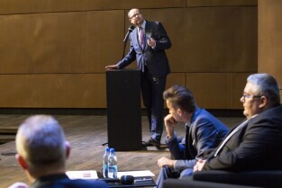 Gdańsk, Europejskie Centrum Solidarności. Spotkanie konsultacyjne z seniorami "Razem inwestujemy w Gdańsk. Propozycja inwestycji do 2020 r.". Nz. od lewej: Marcin Nowicki - Instytut Badań nad Gospodarką Rynkową, Z-ca Prezydenta Gdańska Piotr Kowalczuk, Z-ca Prezydenta Gdańska Andrzej Bojanowski