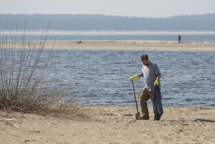 Gdańsk, Wyspa Sobieszewska. Sprzątanie rezerwatu przyrody "Mewia Łacha" zorganizowane przez Grupę Badawczą Ptaków Wodnych "Kuling"