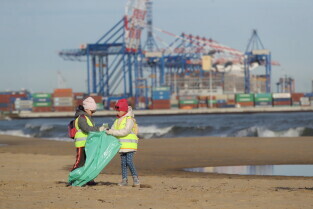 Gdańsk, Stogi. Sprzątanie plaż w ramach akcji "Sprzątanie świata".