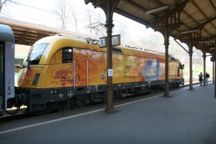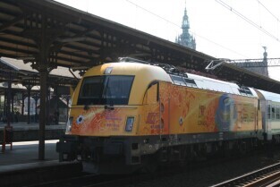Lokomotywa reprezentująca stadion w Gdańsku wyruszyła w trasę. Będzie używana do prowadzenia składów obsługujących linie zagraniczne, przede wszystkim trasy do Berlina. Akcja odbywa się pod hasłem „Kolej porusza kibiców”.
