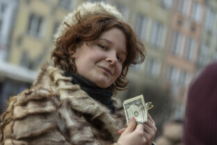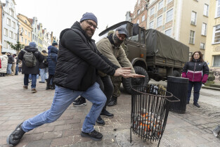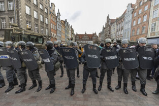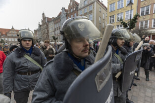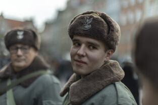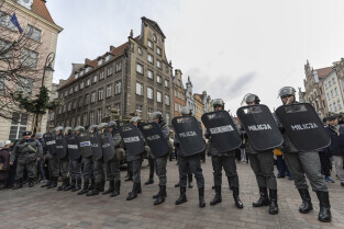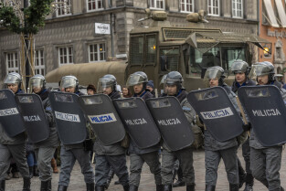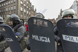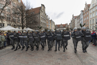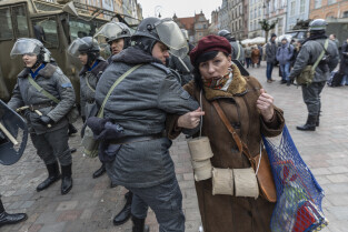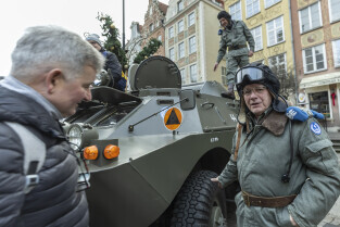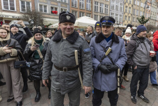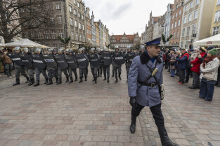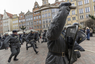 Gdańsk. Stan Wojenny - inscenizacja historyczna na Długim Targu.