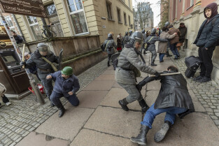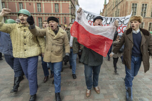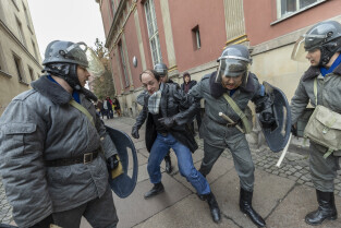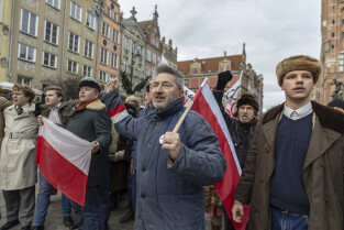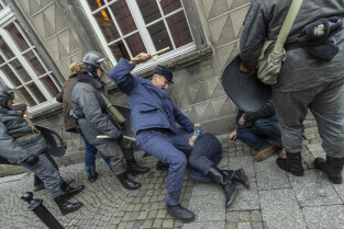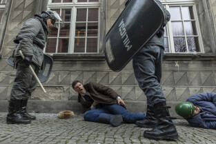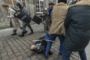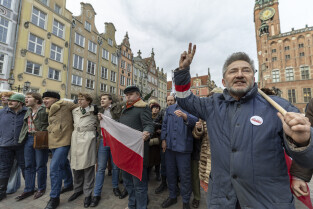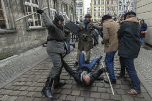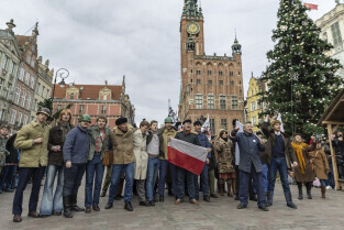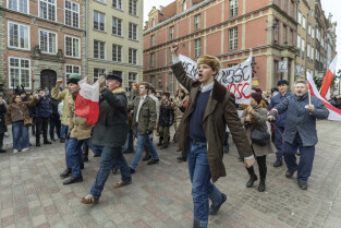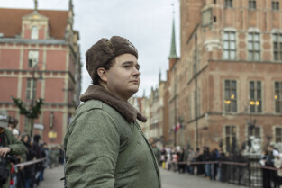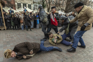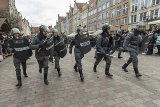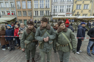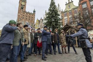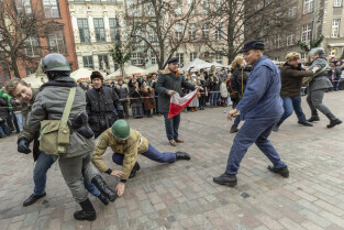 Gdańsk. Stan Wojenny - inscenizacja historyczna na Długim Targu.