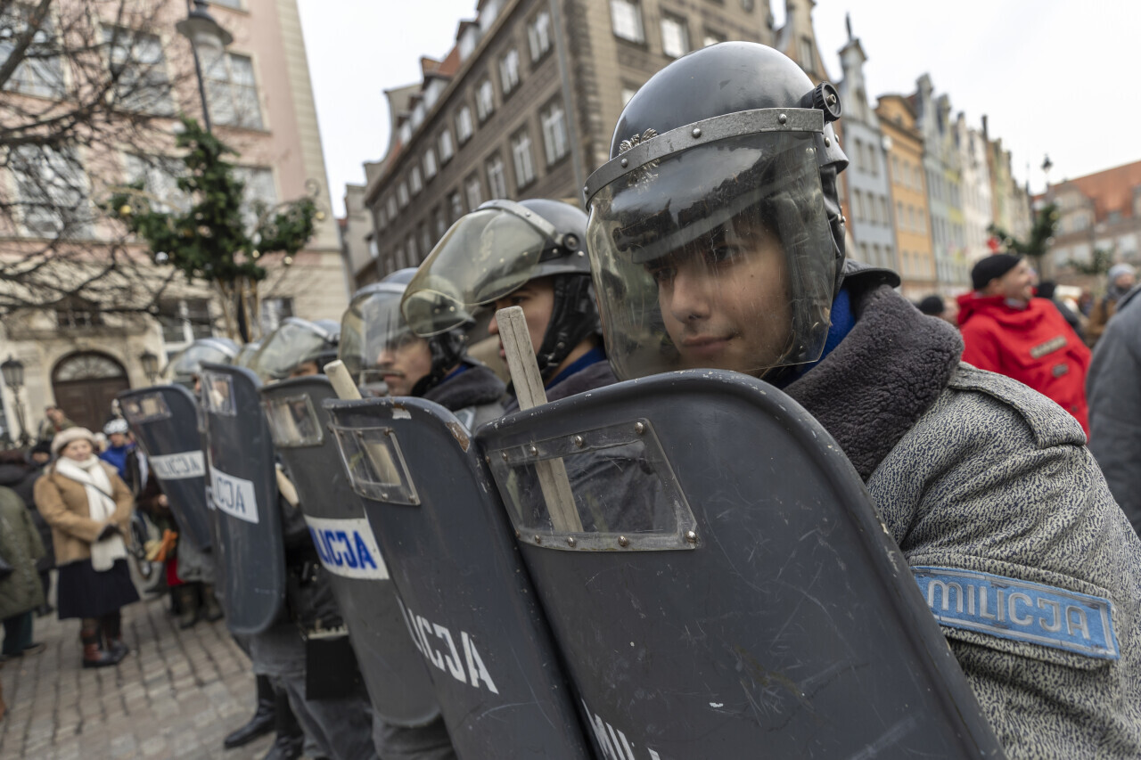 Gdańsk. Stan Wojenny - inscenizacja historyczna na Długim Targu.