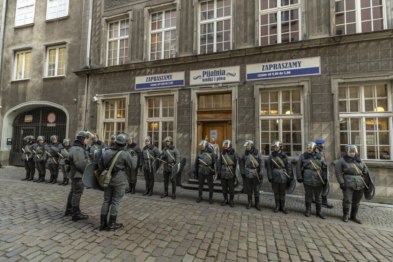 Gdańsk. Stan Wojenny - inscenizacja historyczna na Długim Targu.